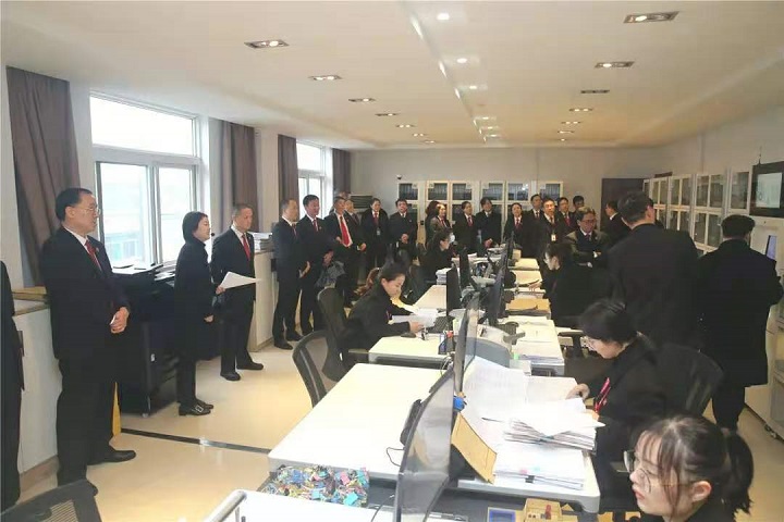 会前,与会人员实地观摩了由我院探索推进的司法辅助事务外包工作,详细了解了其中的运作流程,分工明确、科学规范、运行高效,受到了大家的一致肯定。