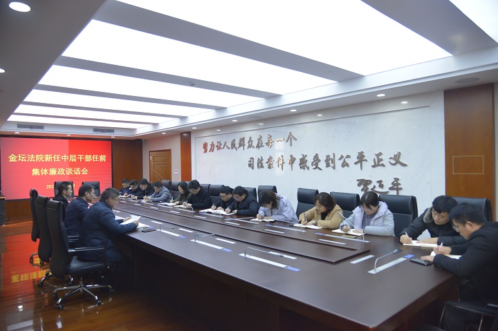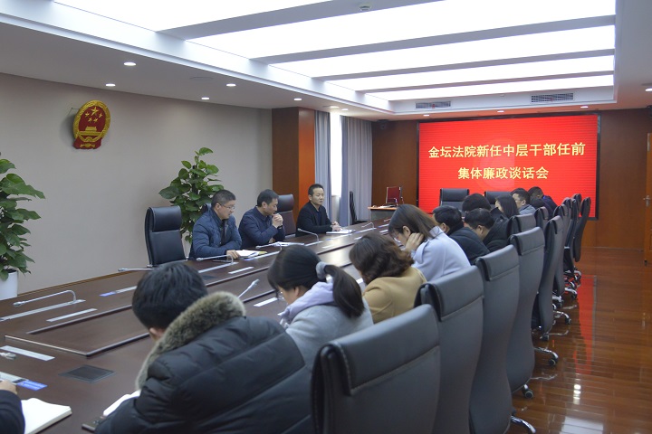 2021年2月8日,法院召开新任中层干部集体廉政谈话会,会议由党组成员、政治部主任吴懿主持,院党组书记、院长于立峰、院党组成员、派驻法院纪检监察组组长卞盛辉以及13名新任中层正副职干部参加会议。