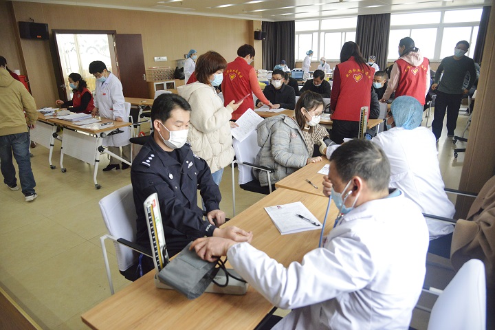我院干警在医护工作人员的引导下,有序填表、化验、等候、采血,准备工作有条不紊。