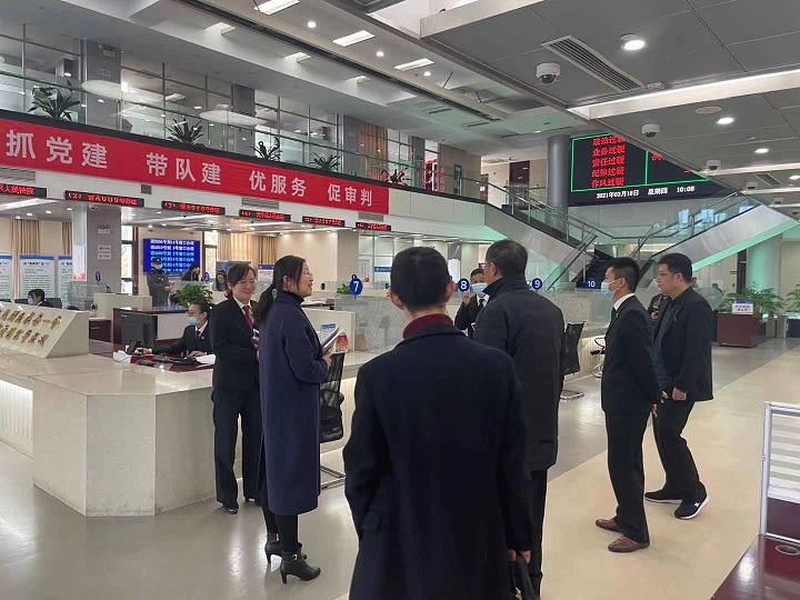 金坛法院一行参观了天宁法院诉讼服务大厅、材料流转中心、诉调对接中心、互联网调解室、互联网法庭等。