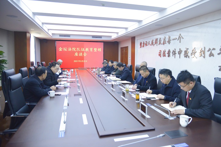 为强化队伍教育整顿的针对性和实效性,切实提升队伍教育整顿成效,2021年3月23日,金坛法院召开队伍教育整顿座谈会,特邀请人大代表、政协委员、企业家、律师、人民陪审员、案件当事人、普通群众代表参加此次座谈,院党组成员、政治部主任吴懿主持会议。