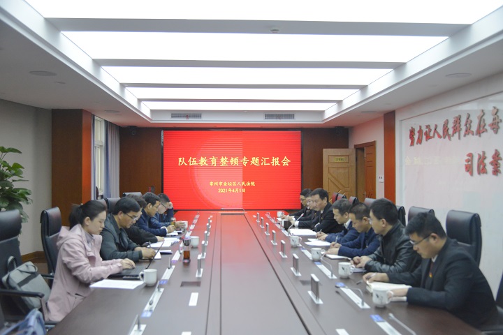 蒋惠琴副院长听取汇报后,对我院队伍教育整顿工作表示了肯定,并指出金坛法院在队伍教育整顿下一步工作中,要提高政治站位,深化学习教育,积极筹划查纠整改阶段工作,以工作质效体现整改的实际效果,为服务社会经济发展贡献司法力量。