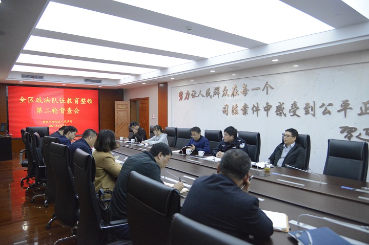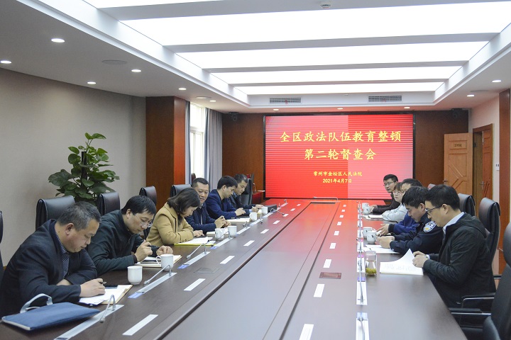 2021年4月7日,区政法队伍教育整顿工作专班成员一行深入金坛法院民二庭、法警大队、执行局、审管办四个部门开展第二轮督查,并召开座谈会。