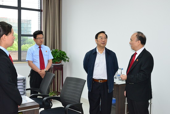6月3日,省人大常委会副主任、省法院咨询委员会名誉主任公丕祥等一行来金坛法院视察调研。此次调研主题是建立健全矛盾纠纷多元化解机制工作。调研组一行视察了薛埠人民法庭诉讼服务中心、审判法庭,并召开调研座谈会。