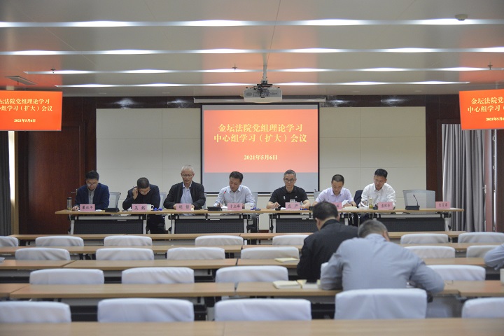 2021年5月6日,金坛法院召开党组理论学习中心组学习(扩大)会议,全体院领导、各部门负责人参加会议。