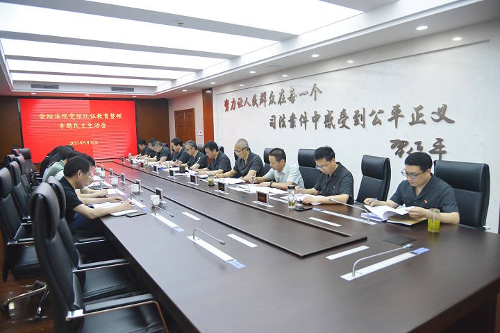 根据政法队伍教育整顿工作要求,5月10日下午,金坛法院党组召开队伍教育整顿专题民主生活会。省政法队伍教育整顿驻常指导组法院组组长刘茂强、常州市中院副院长卢云云、金坛区委政法委副书记马红星一行列席。会议由金坛法院党组书记、院长于立峰主持。