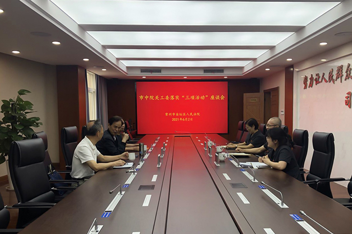 6月2日,常州中院关工委陆洪生、张纪范、王润荣一行三人莅临金坛法院调研指导关工委工作,金坛法院党组成员、副院长胡哲,院关工委委员祁冻一,院关工委办公室成员、立案庭(诉讼服务中心)副庭长王蕊参加会议。